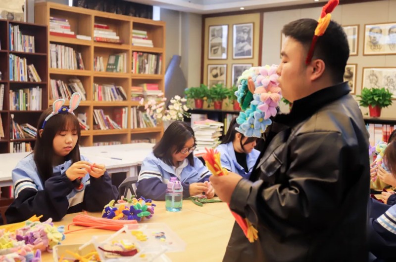 在社团活动中,老师们精心指导学生们学习传统制作手艺。从剪纸的基本技法到绒花的制作,每一项手艺都承载着历史的沉淀和文化的底蕴。学生们全神贯注地聆听着老师的讲解,用心去感受传统文化的魅力。他们拿起刻刀,做出心中的美好愿景;他们摆弄着绒线,创造出独一无二的绒花作品,出对传统文化的热爱。
