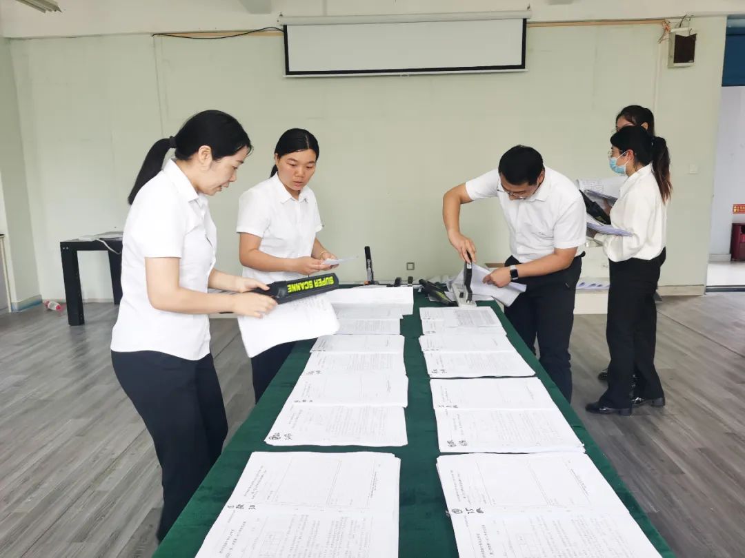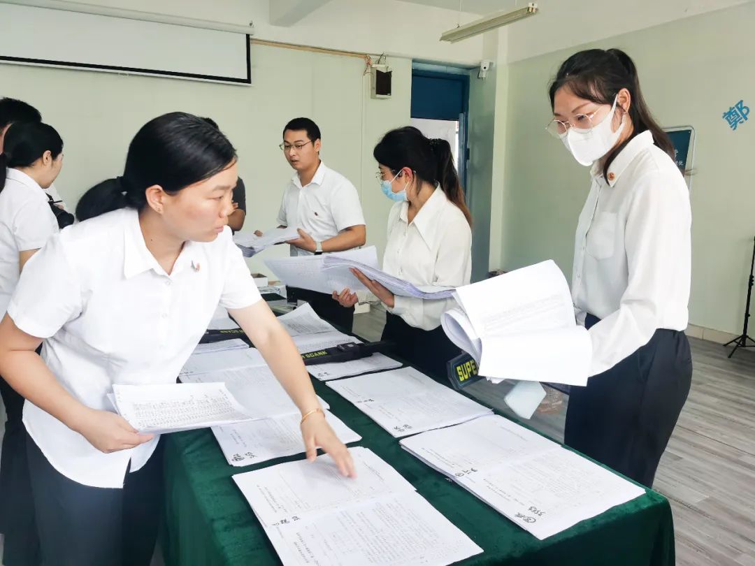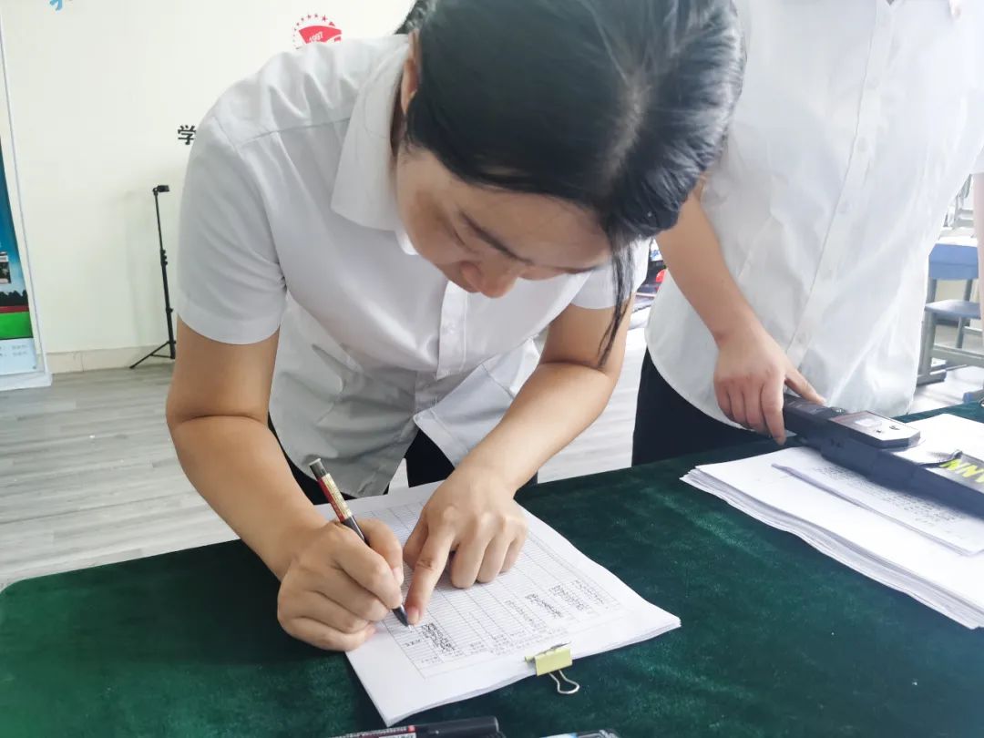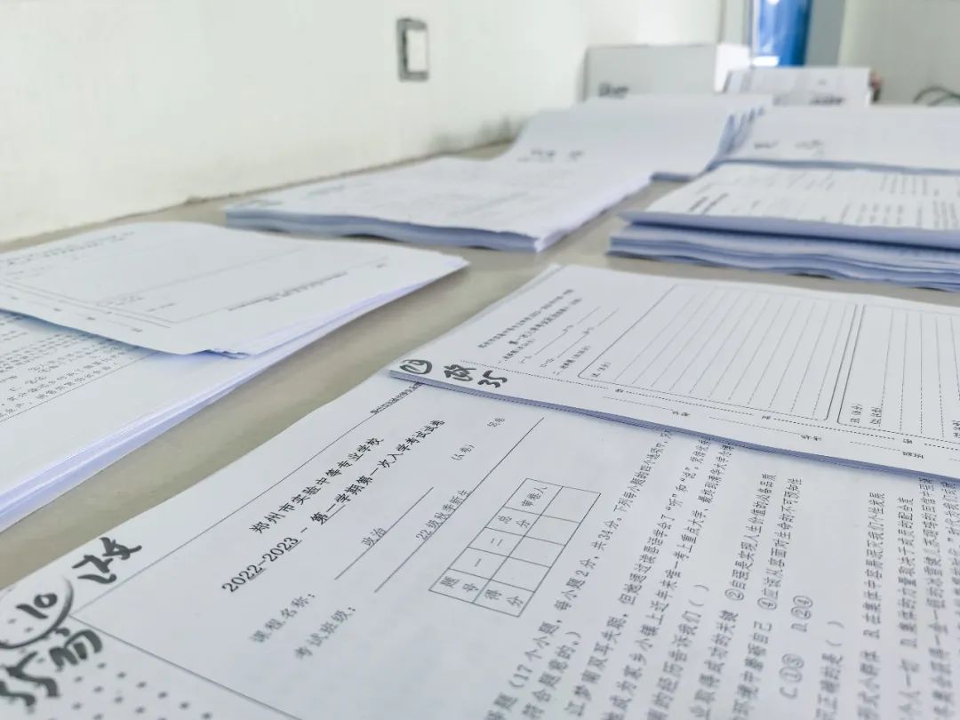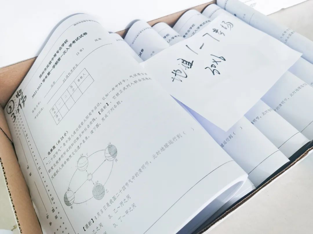 老师们为了考试顺利的进行,早早地来到教室,提前将各个考场的试卷分好。老师签名领取各考场试卷,并将分好的试卷,带去各个考场,等待开考后及时分发。