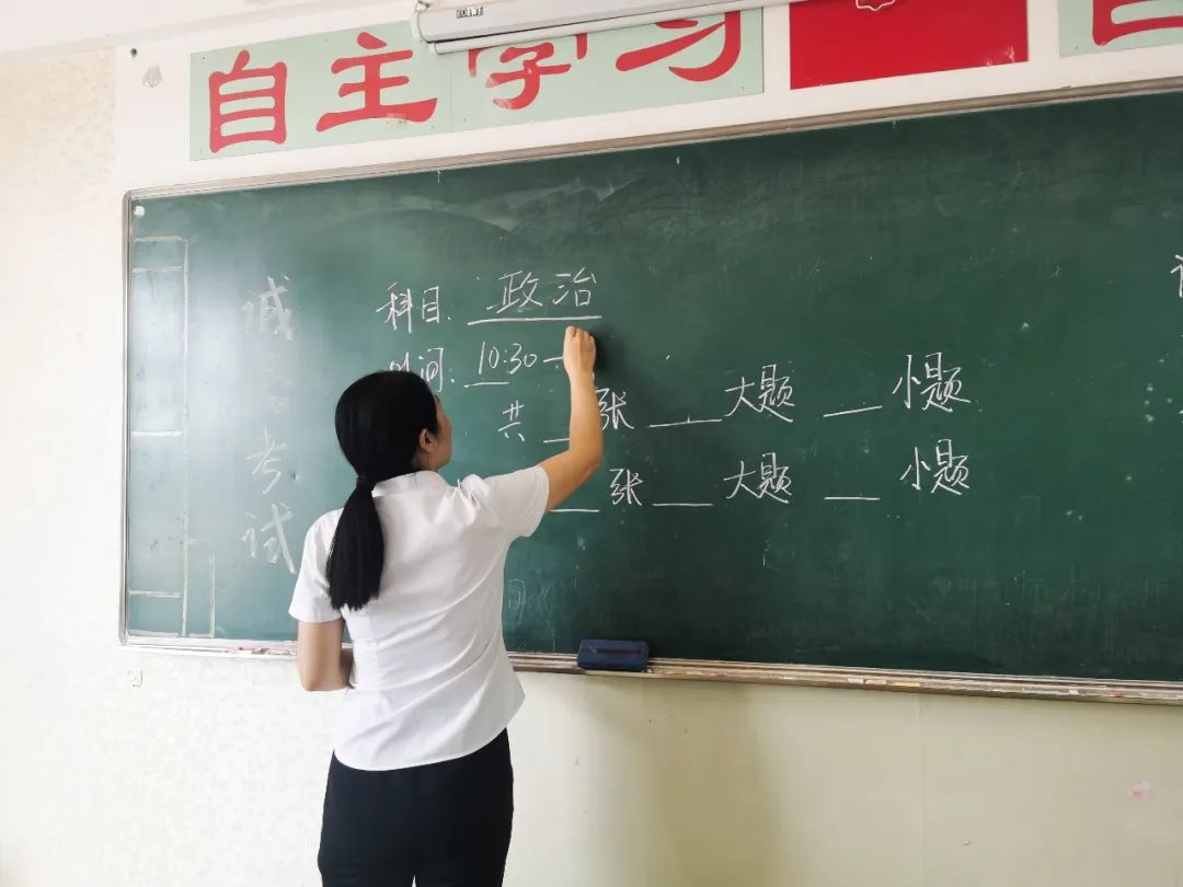 监考老师将试卷信息、考试科目写在黑板上,并告知学生考场规则。
