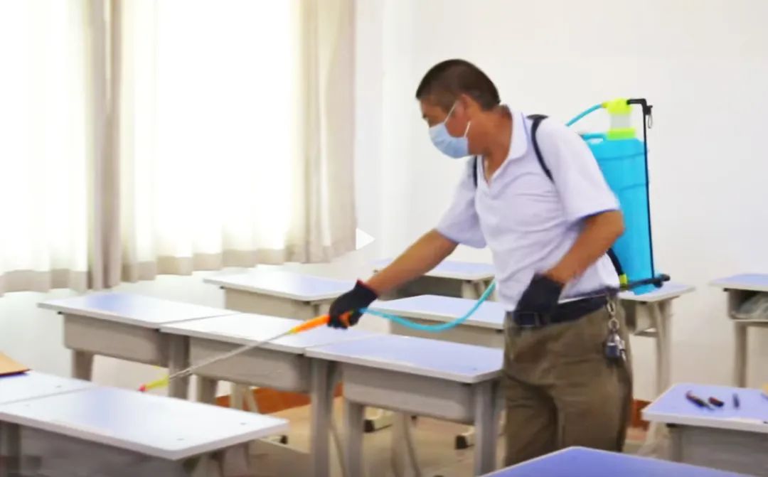 消杀过程中,工作人员严格按照科学比例进行喷雾剂配兑,身背消毒设备,对教学楼、食堂、卫生间、走廊、楼梯等场所进行“地毯式全覆盖”消毒杀菌除虫。