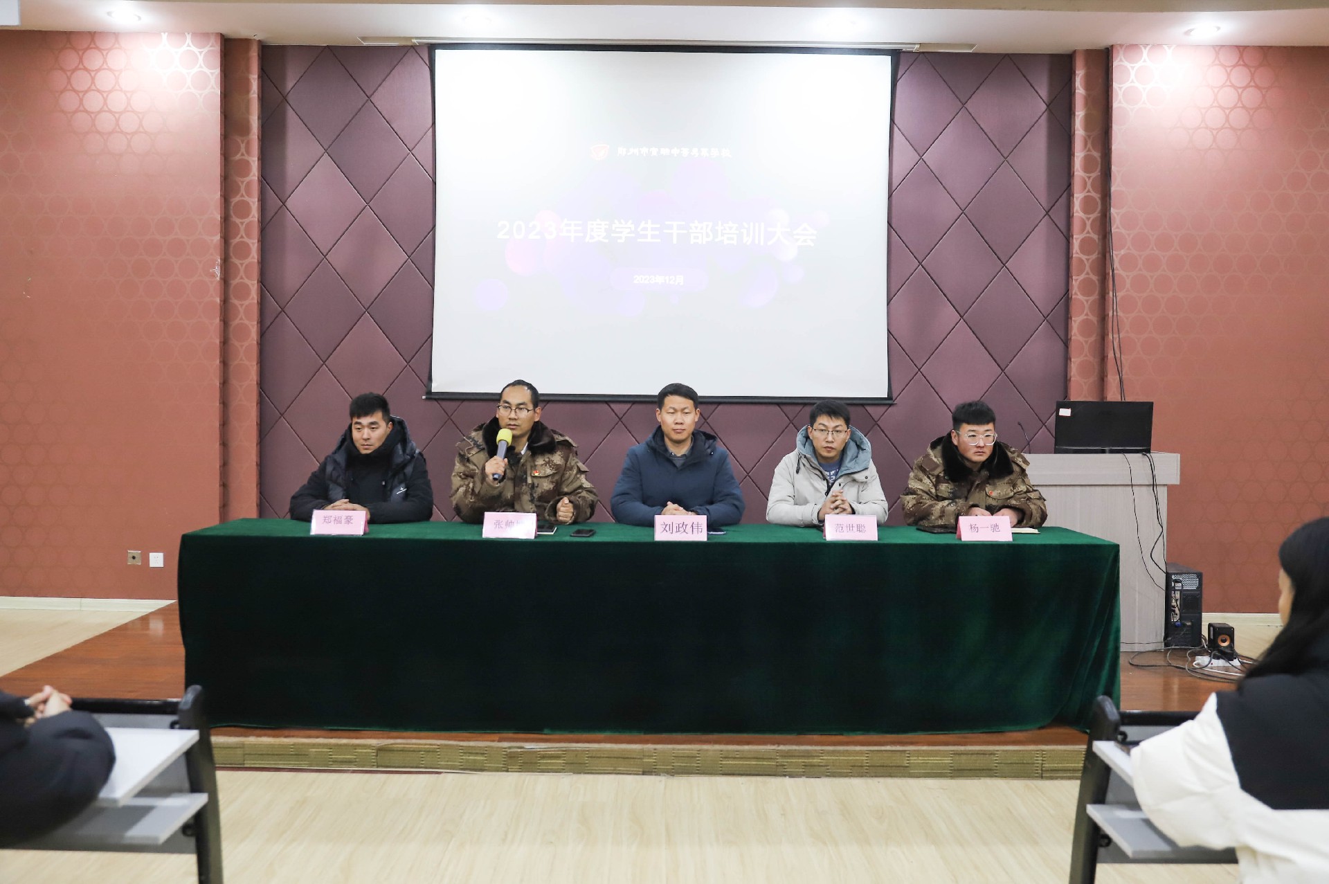 会议伊始,校团委书记张帅博和校办主任刘政伟发表了讲话。强调了学生干部在校园文化建设中的重要作用,并希望通过本次培训会,学生干部能够进一步提高自身素质,更好地发挥模范带头作用。