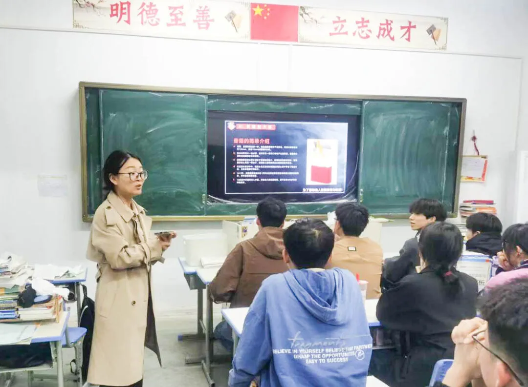 在本次班会活动中,班主任们带领学生观看禁烟视频、讲解吸烟危害等,提醒同学们从现在起拒绝吸第一支烟、拒绝吸二手烟。倡导同学们养成科学健康的生活方式和习惯,为共同维护、打造、建设无烟校园贡献自己的一份力量。同学们都聚精会神地听着,表情严肃。