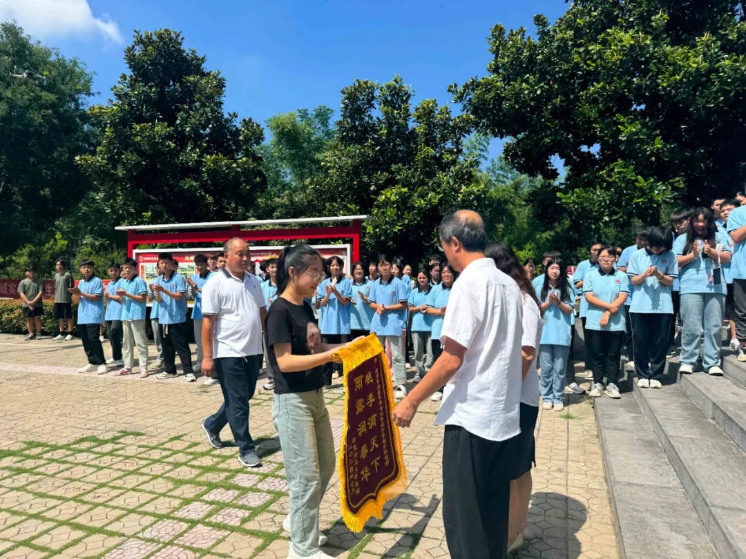 盛夏的阳光热烈而灿烂,在2024年这个意义非凡的夏天,我校2024届毕业生常雯倩及家长怀着满腔的感恩之情回到校园,为我校赠送锦旗,感谢学校的培养 。常雯倩同学在今年高考中取得673分,全省第12名的好成绩,已经被信阳师范大学录取!