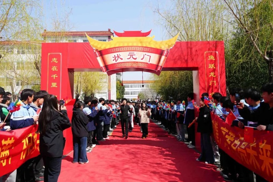 考前,学校举行隆重送考仪式:铺红毯、设状元门,学弟学妹列队祝福,老师为学子送上向日葵寓意 “一举夺魁”,礼炮齐鸣、壮行助威。同时组建专职送考团队,安排专属送考车辆,全程陪同赴考、24小时值守保障,用暖心陪伴为学子注入满满底气。