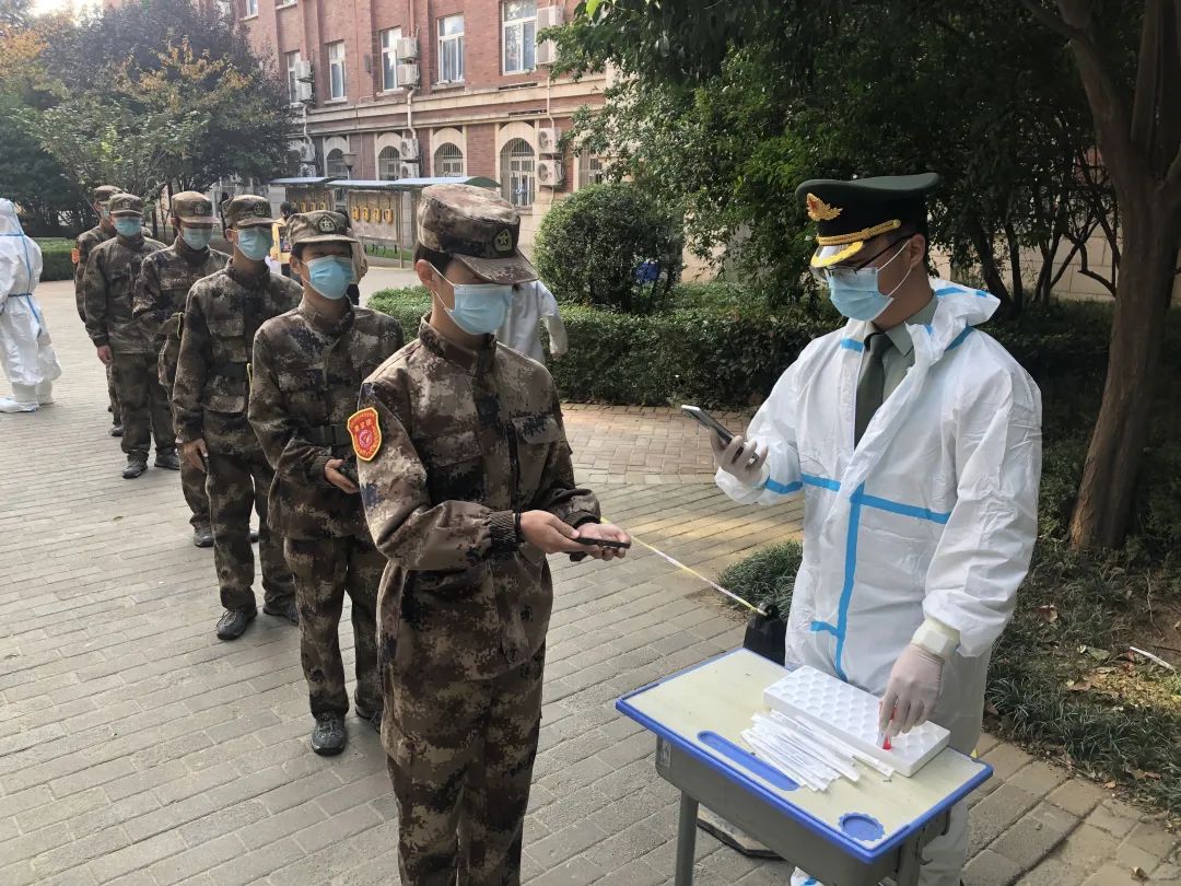 在实验的校园里是这样的:早起做核酸时,各宿舍、各班级有秩序的排队,带往宿舍楼下空地,列着整齐的队列等待着。他们排着队、间隔着,认真的等待着医护人员进行的核酸检测。
