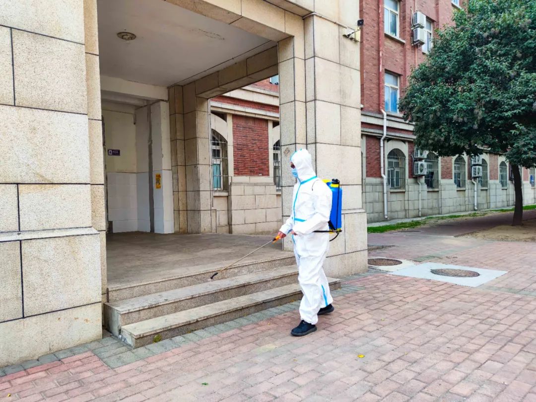 校园安全也是重中之重,安保人员、值班教师全天坚守岗位,严格按照防疫规定,检查进入校园的人员和物资,餐厅人员克服种种困难确保全校师生的饮食供应,教官、老师们则担任起环境消杀的工作。