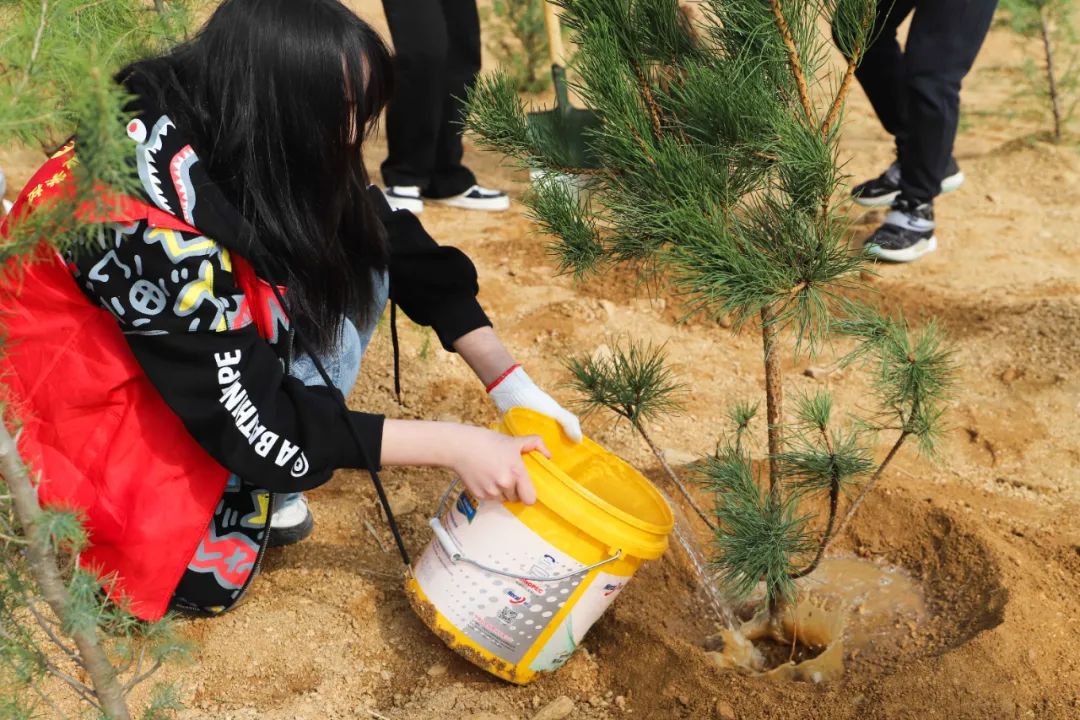 活动现场,每位志愿者认领了一棵小树苗,同学们互相帮助、分工合作,在老师的带领下挖坑、种植、培土、浇水,每一步都认真细致,现场一片火热,成为春天又一美丽的风景线。