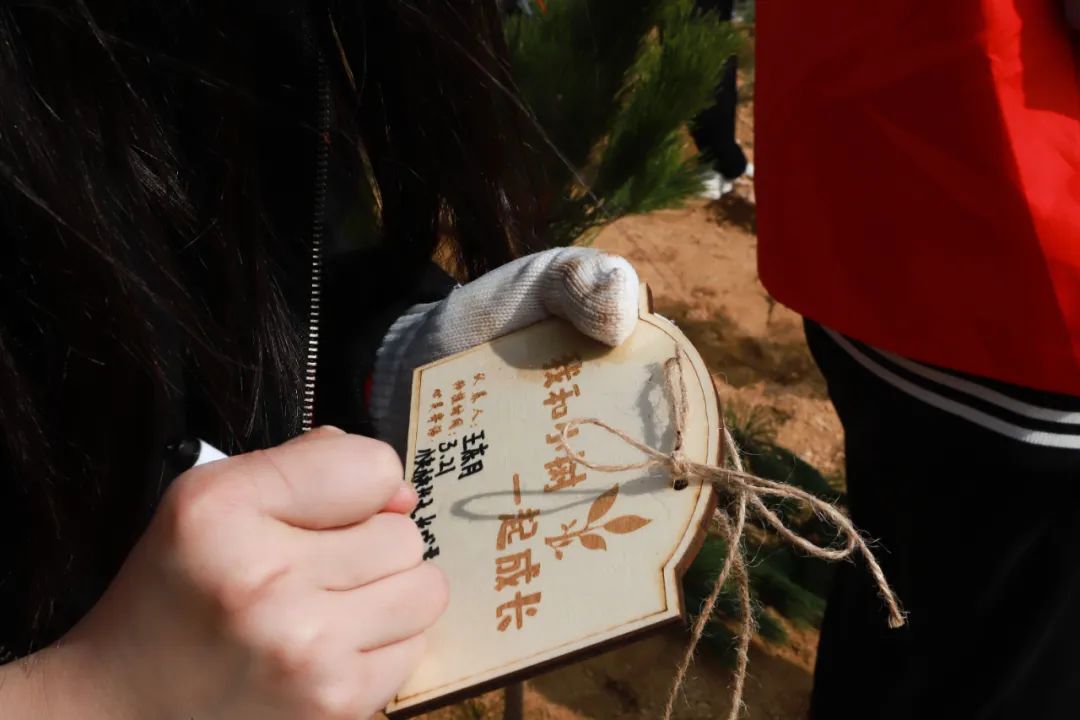 一颗颗幼苗迎风而立,为明媚的春天增添了一抹新绿,一个个忙碌的身影,更成为春日里,一道靓丽的风景线。“生态绿”和“志愿红”交相辉映。同学们纷纷在牌子上写下自己的名字和心愿,在这里,我们播下种子,种下梦想,浇水施肥,脚踏实地,静待花开,梦想启航。