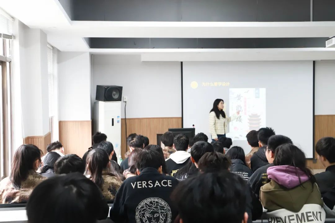 讲座上,李艳老师首先就什么是设计切入正题,其次通过设计的学习内容、设计的就业前景等方面向同学们做了介绍,帮助我校学生了解设计的概念的新的发展方向。