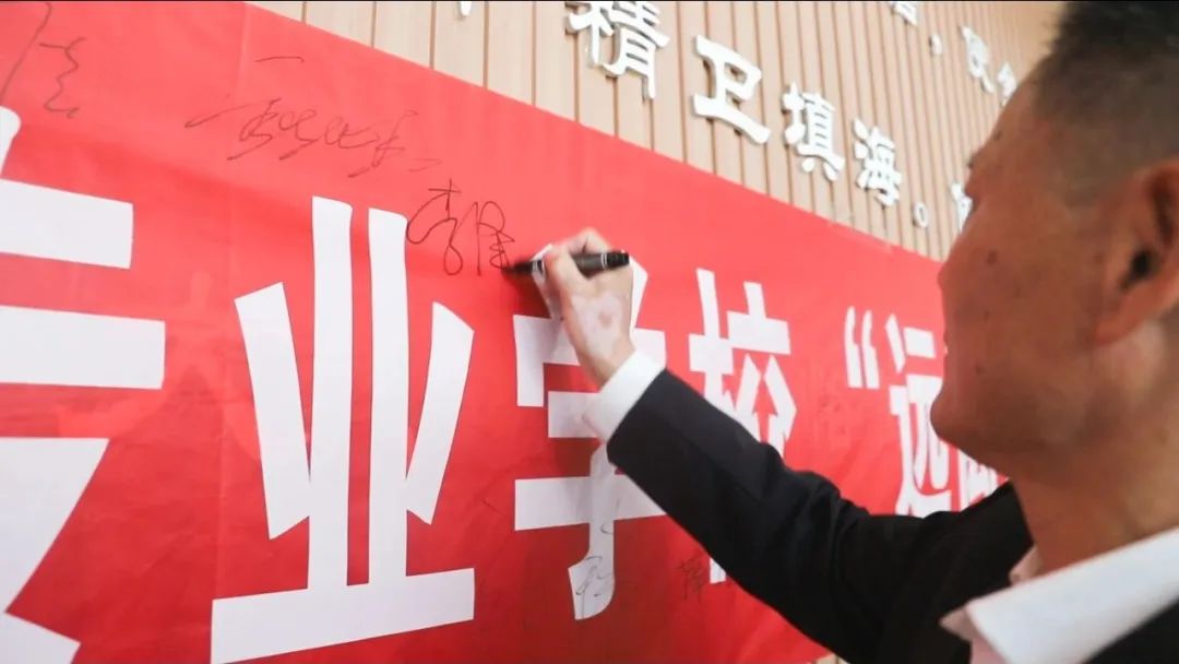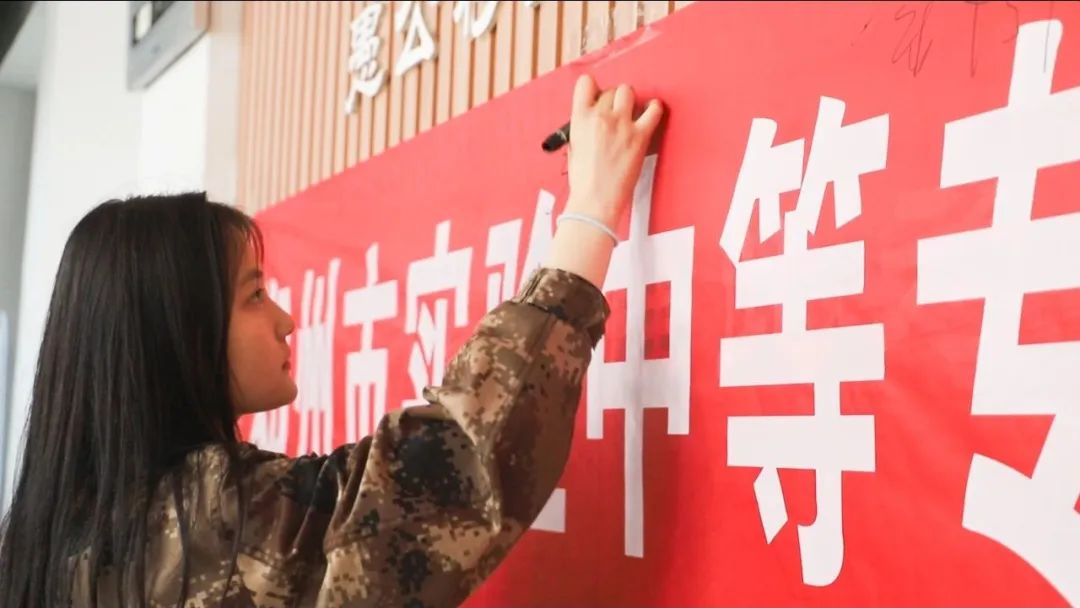 随后,在学生宣誓代表的带领下,我校全校师生举行了庄严的宣誓仪式。宣誓仪式结束后,为了表达对拒绝反诈、防诈的支持和决心,领导和师生们纷纷在条幅上签上了自己的名字。