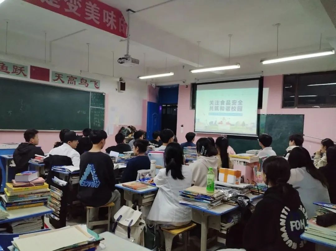 班会课上,各班班主任精心制作的课件,向学生们介绍了一些食品安全知识和有关食品中毒或不安全的食品问题事件,并通过讨论或问答等方式,引导学生正视并思考身边的食品安全问题。更深入地向同学们介绍了“什么是三无产品”、“如何判断劣质食品”、“食物中毒怎么办”“发现食品安全违法行为如何处理”等食品安全知识以及包装上的秘密。