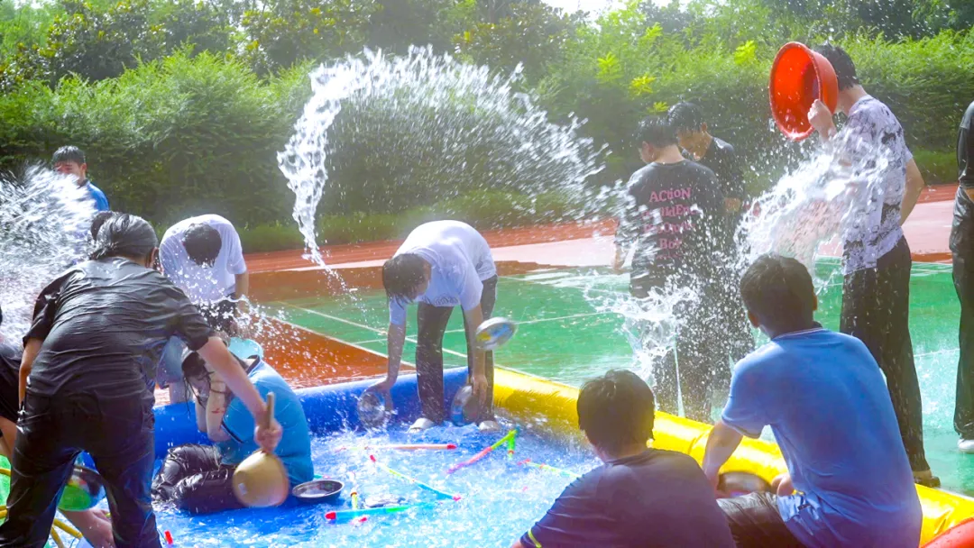 在泼水节的过程中,还穿插了一些有趣的小游戏和表演。有同学展示了精彩的舞蹈,还有的同学唱起了欢快的歌曲,为活动增添了更多的欢乐氛围。这场泼水节活动不仅让同学们在炎热的夏日里感受到了清凉和快乐,更增强了同学们之间的友谊和团队合作精神。大家在水幕中尽情欢笑,共同留下了一段美好的回忆。
