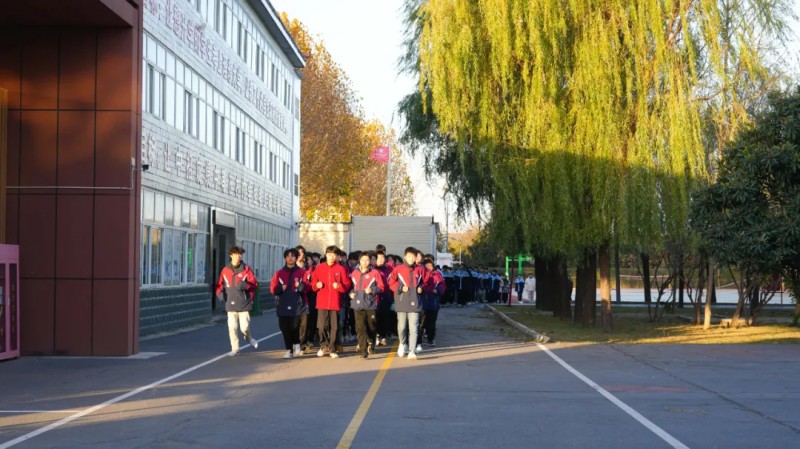 随着老师一声清脆响亮的口令,跑操正式开始。整个操场瞬间“动”了起来,各班队伍有序地向前涌动。同学们的脚步轻盈而又整齐,每一步都像是踩在青春的鼓点上,发出富有韵律的声响:“一二一,一二一……”那声音在校园的上空回荡。各班的口号声此起彼伏:“青春无畏,逐梦扬威!”“强身健体,立志成才!”。每一声口号都如同冲锋的号角,激励着大家不断超越自我,向着目标奋勇前进。